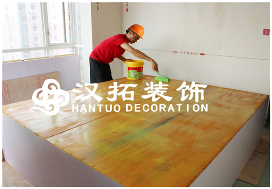 B、飾面板,實木線條進場要做好防污處理。用底漆涂刷一遍,淺色飾面板正反面都要涂刷底漆。