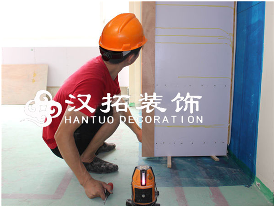 衣柜固定應用紅外線水平儀調平,再用木楔釘入確保穩(wěn)固。