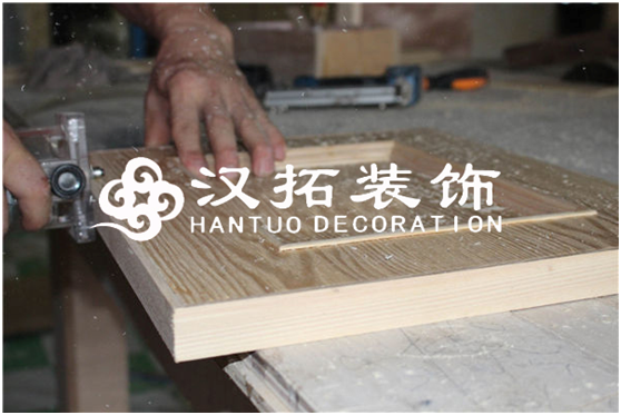 B、門套線底板用9厘板襯底,門套上方轉角開“7”形。目的:防止開裂。