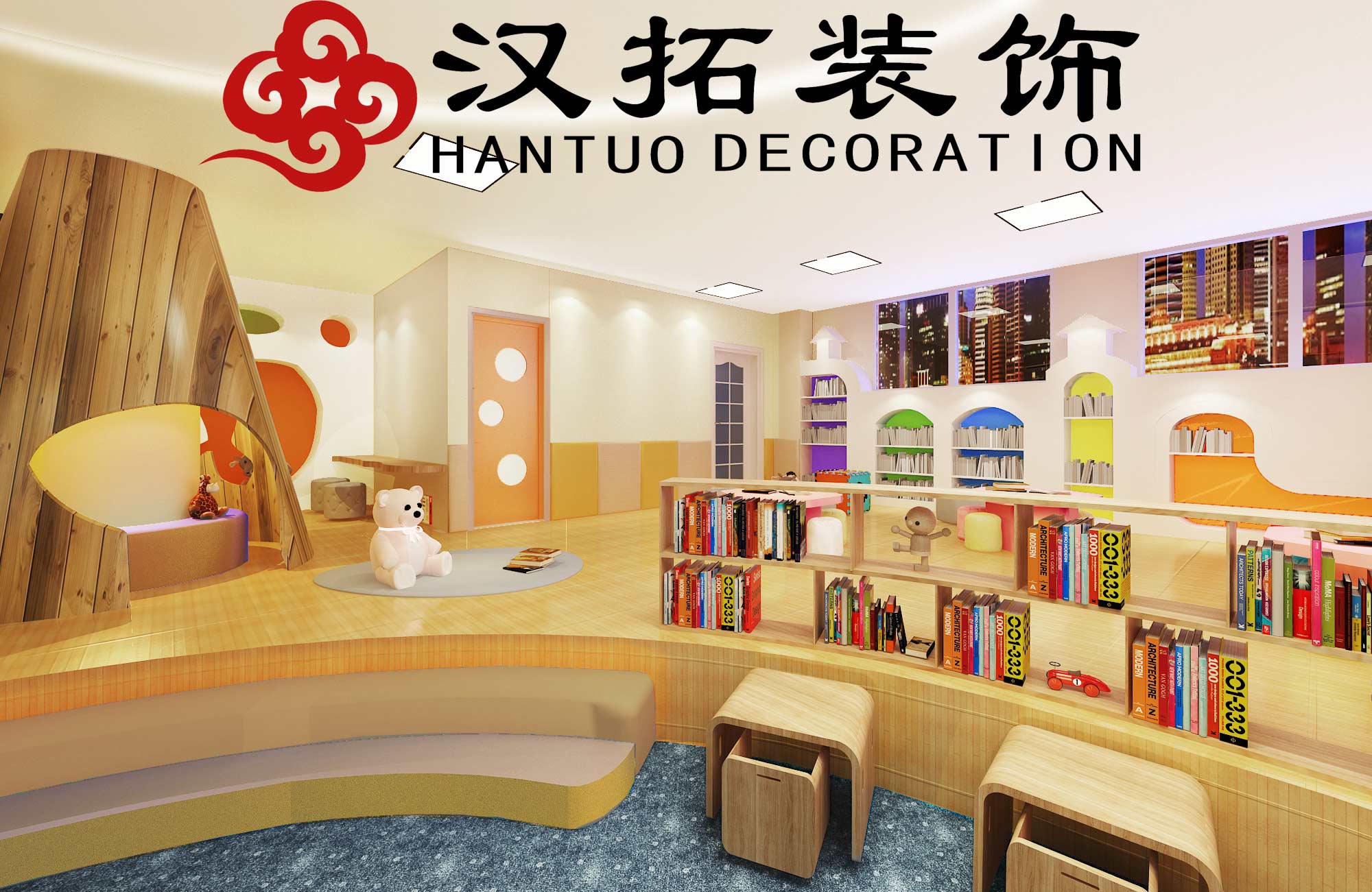 南京萬(wàn)福路幼兒園攜手南京漢拓裝飾,共同打造了一個(gè)充滿陽(yáng)光,多元化的幼兒園閱覽室。