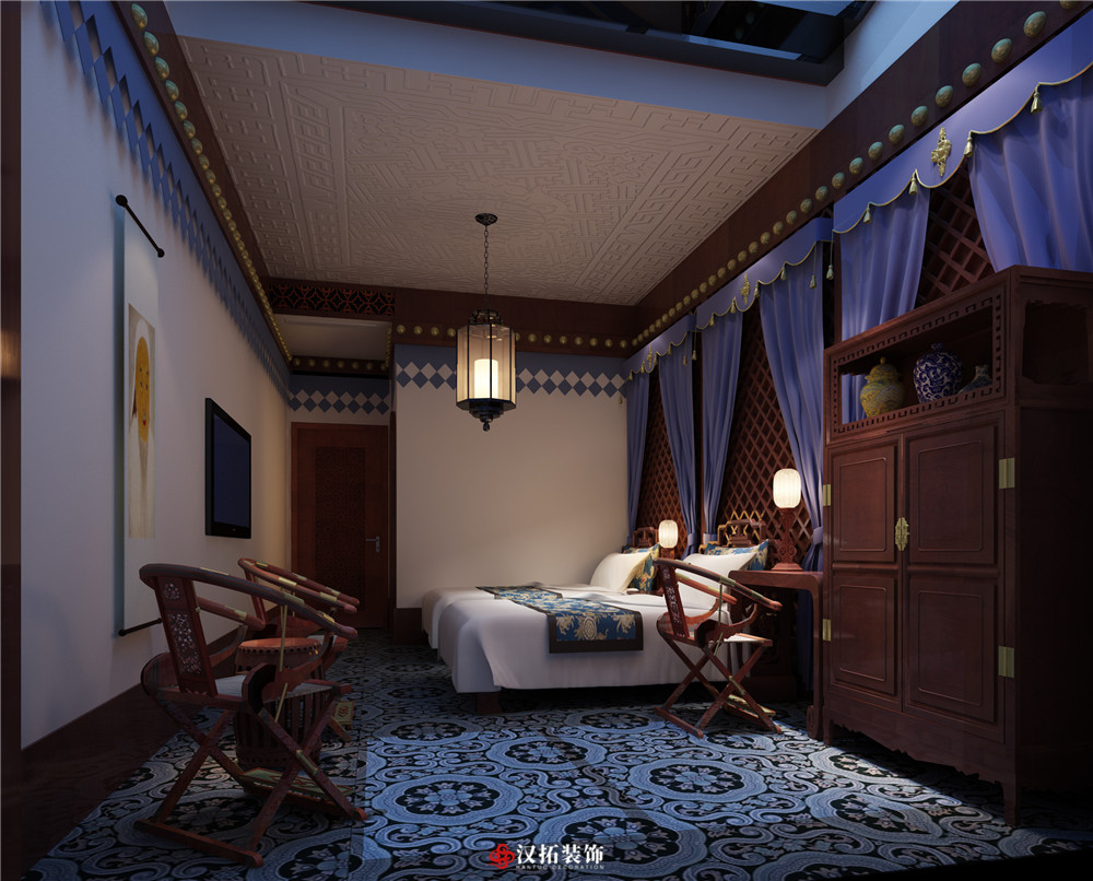 設(shè)計(jì)說明:預(yù)算:180萬 采用直接照明和間接照明相結(jié)合的方式,在色調(diào)上以暖色調(diào)為主,提高人們的興致,搭配上整體中式的環(huán)境,在熱烈中添了幾許恬靜。