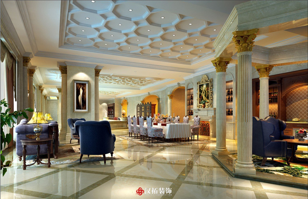 項(xiàng)目功能區(qū):大廳 服務(wù)臺(tái) 后廚 包間 辦公室 洗手間 餐廳 吧臺(tái) 休息區(qū)