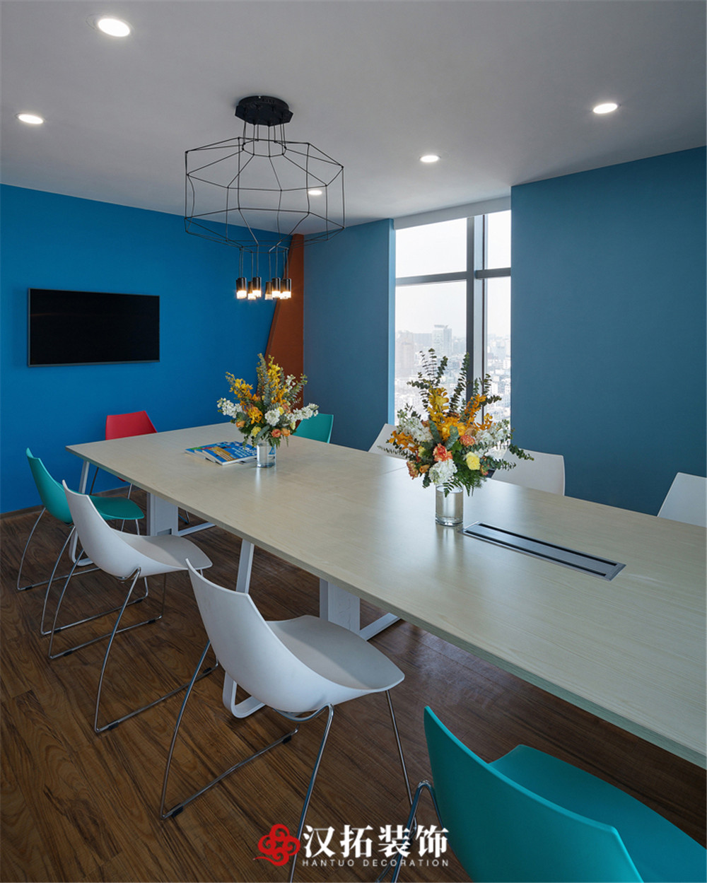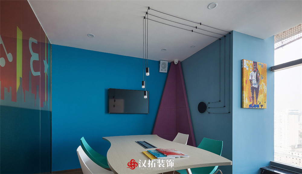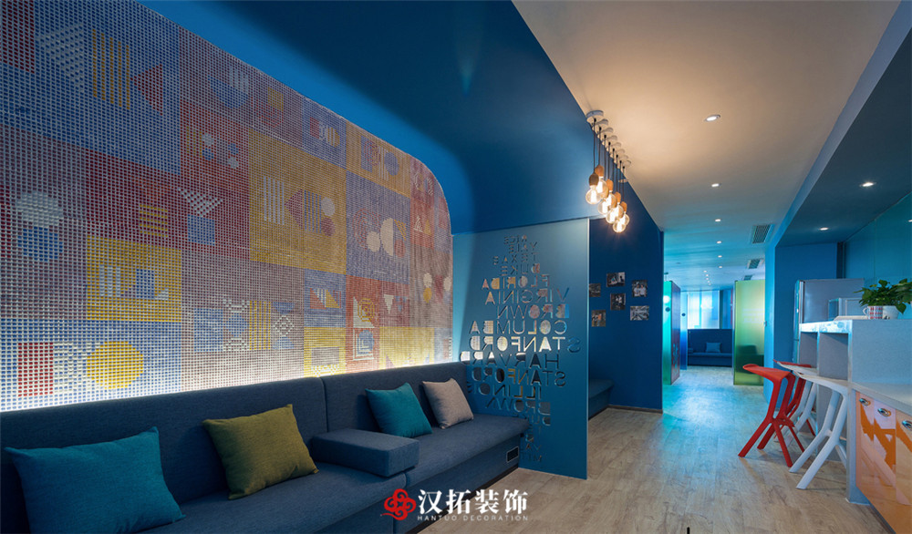 設(shè)計說明:整個空間以藍(lán)色為主色調(diào),將其他顏色嵌入其中,打造出一種小清新的自然感,讓人心情愉悅舒適。光線明亮,整體富有層次感,簡約溫馨。