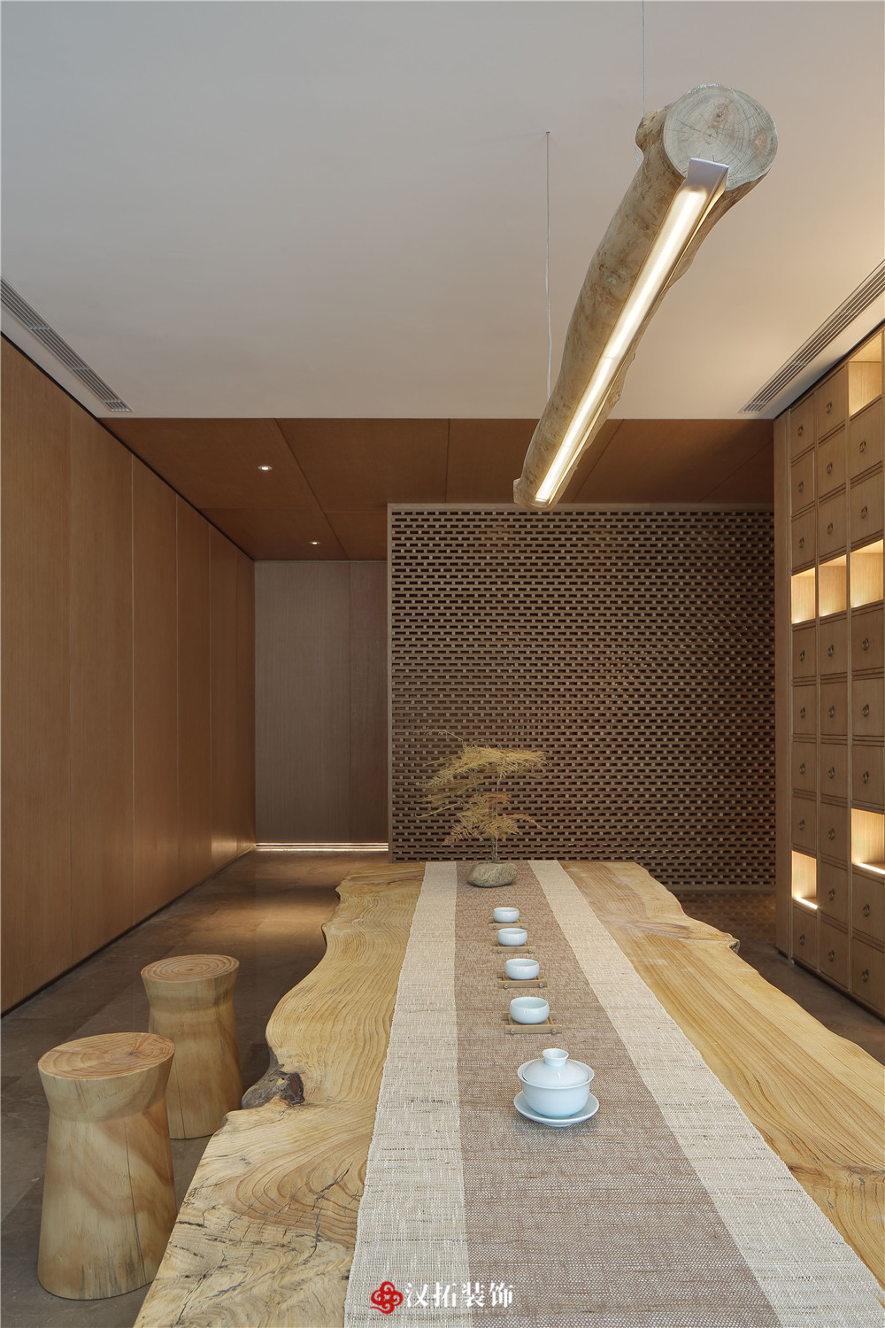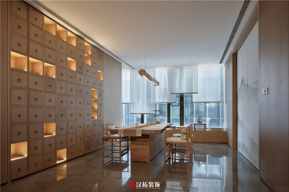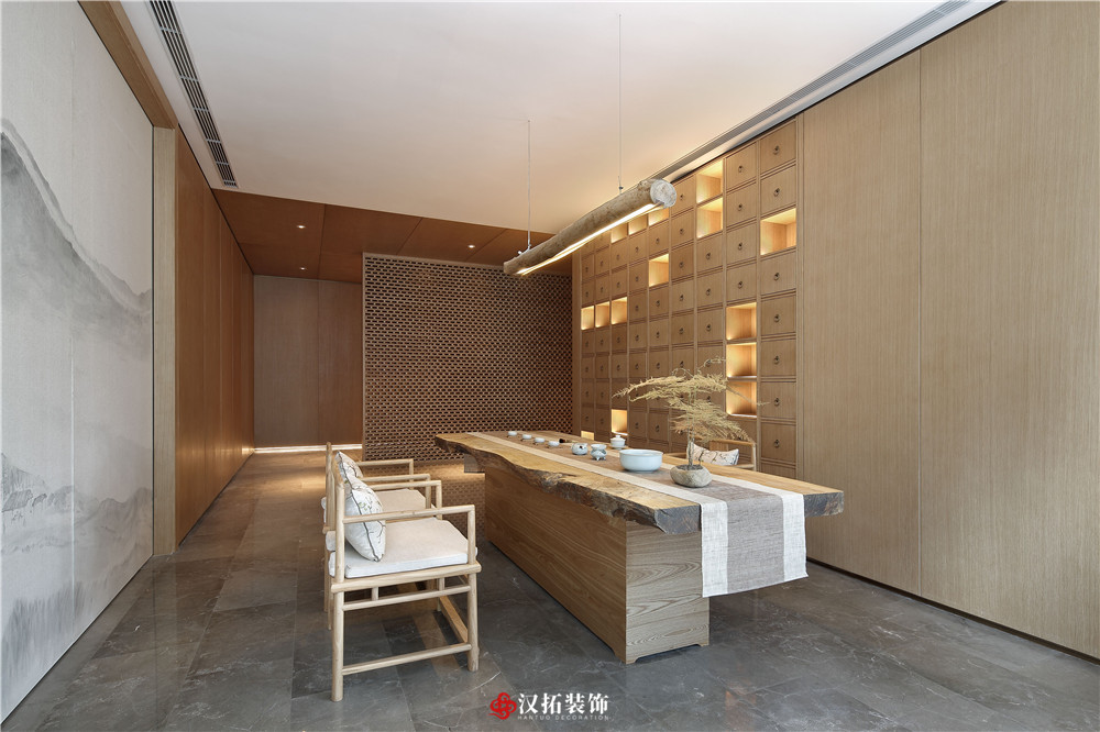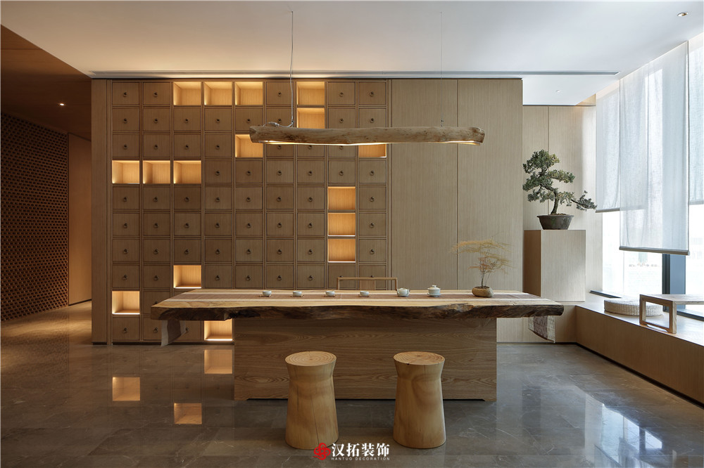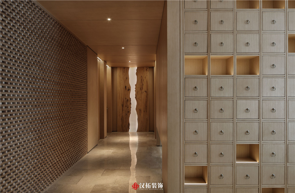 設計說明:本案材料簡單,色調樸素,造一片凈土,尋一處安靜,使身心得到放松。在這里,原木色的墻板配上深灰色的石材,中醫(yī)的藥柜整齊地羅列著,空間彌漫著淡淡的中式味,卻找不到傳統(tǒng)的中式元素,達到了有意無形。