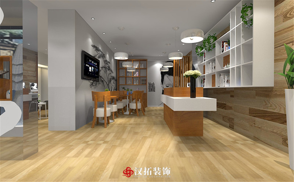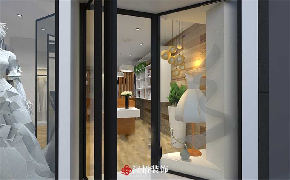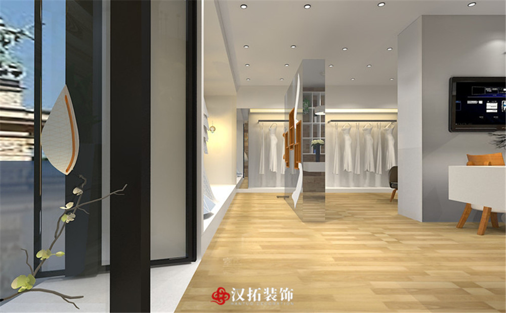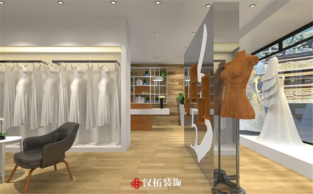設(shè)計(jì)說(shuō)明:整個(gè)婚紗店以白色為主色調(diào),與木質(zhì)地板相融合,家具也都是淺色調(diào),簡(jiǎn)潔大方,給客戶一種清新自然的感覺,光線明亮,整個(gè)空間的利用率很高。