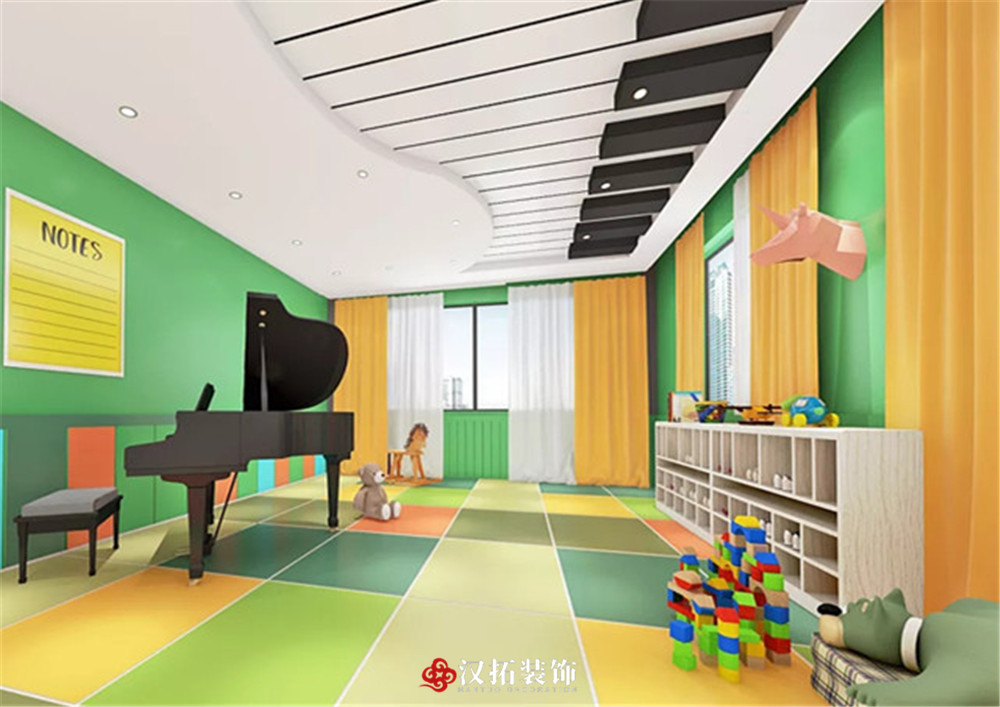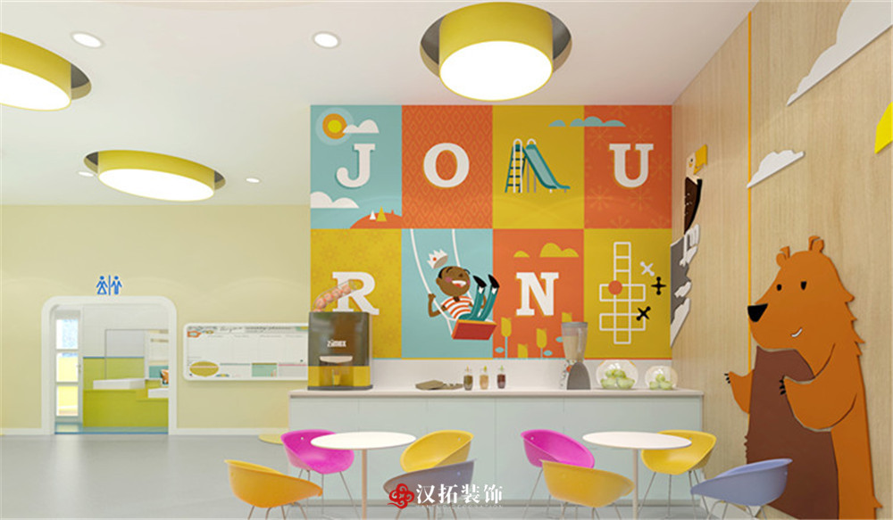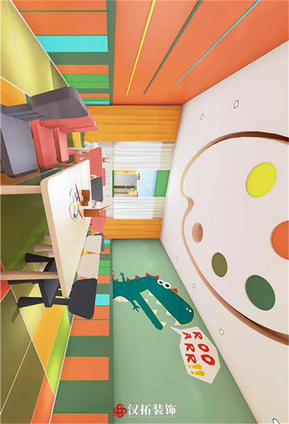 設(shè)計(jì)說(shuō)明:整個(gè)空間色彩明快,線條簡(jiǎn)潔,富有情境性和益智性,能滿足幼兒的感官需求,空間利用率高,能啟發(fā)和引導(dǎo)幼兒與環(huán)境相互作用。