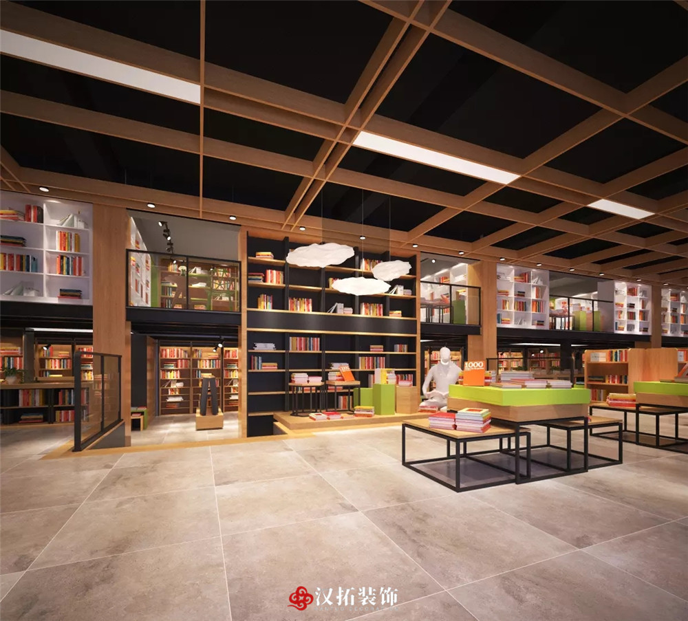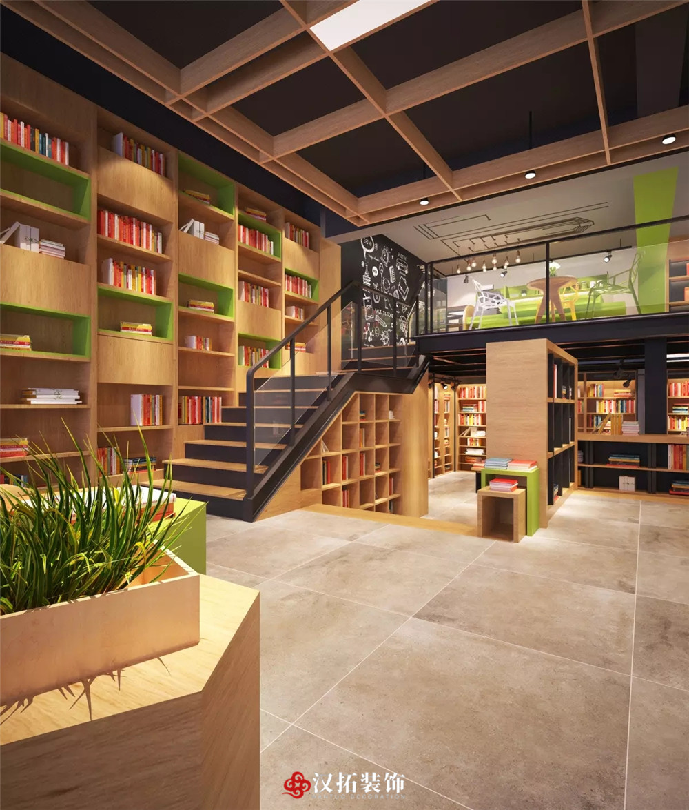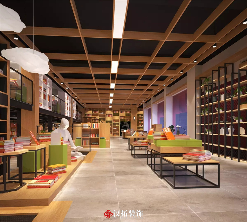 設(shè)計(jì)說(shuō)明:整體光線明亮,適宜閱讀,不同類型的圖書展覽架使用不同的材質(zhì)和顏色作為區(qū)分,注重讀者體驗(yàn),整個(gè)空間有格調(diào),有層次,充滿精神享受。