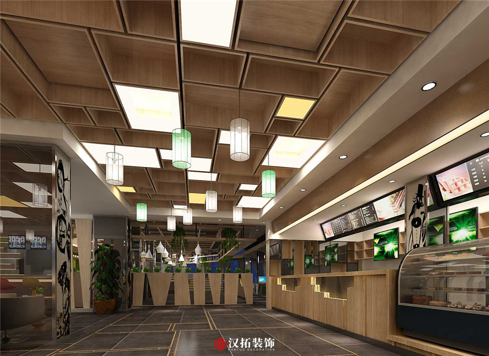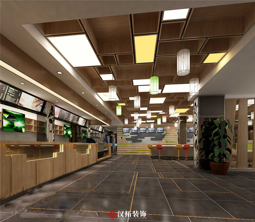 設(shè)計說明:整個空間色彩清新,隔板點綴著綠植,凳子也以深綠為主,給人一種安靜優(yōu)雅的感覺。休閑吧臺以小清新搭配為主,讓人在娛樂中可以獲得休閑。