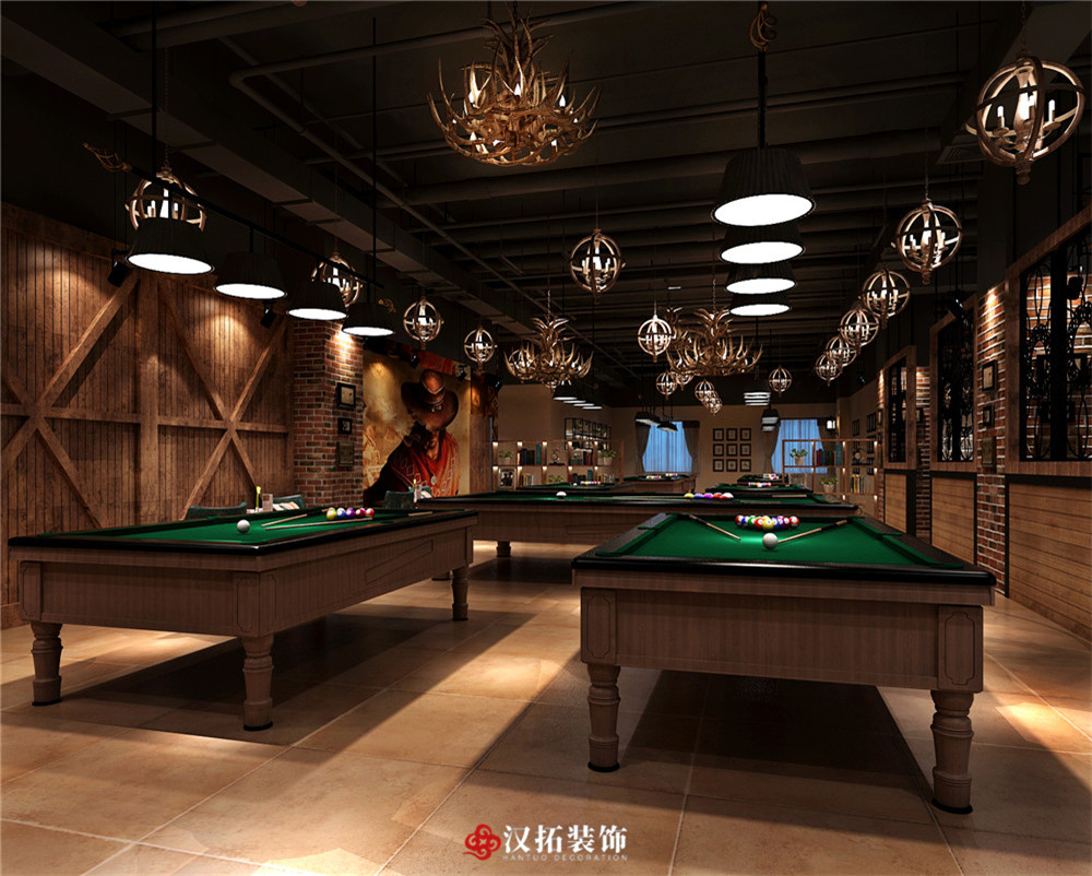 設(shè)計(jì)說(shuō)明:整個(gè)空間分為臺(tái)球區(qū),網(wǎng)咖區(qū),休閑區(qū),展現(xiàn)出深邃的文化氣息。色彩上以褐色為主,運(yùn)用的都是淡雅、柔和、協(xié)調(diào)的色調(diào),散發(fā)出古樸、懷舊的氣息。