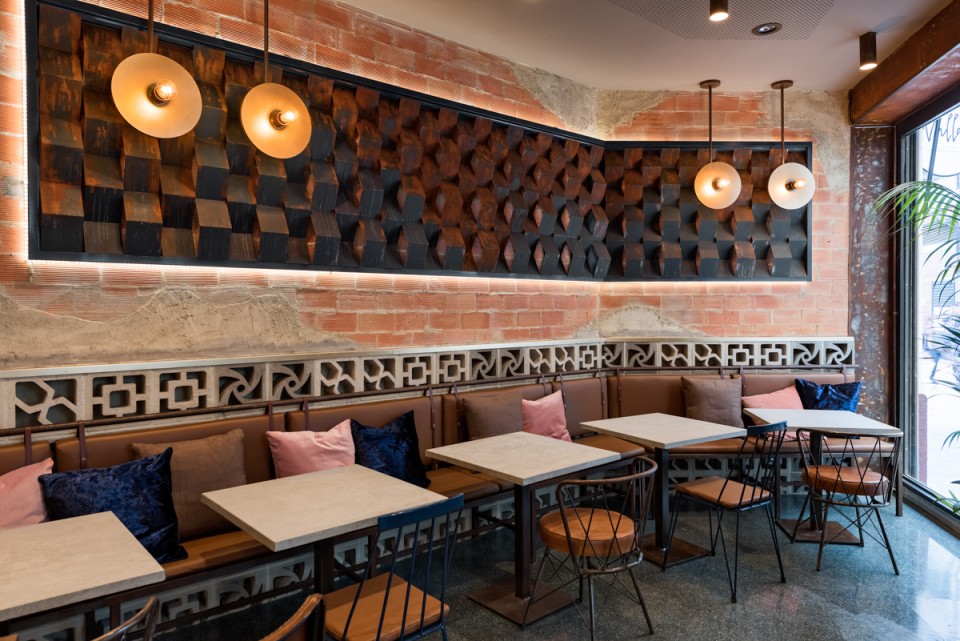 設計說明:該酒店由南京漢拓裝飾裝修設計。設計師故意暴露了墻面背景墻的粗獷的磚結構和磚紋理,使得酒吧的背景就如同置身于花園里一樣。軟裝的配飾和家具略帶一絲金屬色,天花板上點綴了一些小射燈,起到了轉化視線的作用。射燈射下的光線能夠很好的營造出休閑的氛圍。