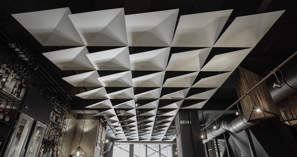 設計說明:該清吧咖啡廳由南京漢拓裝飾裝修設計。生銹的墻壁,蘆葦板,皮革座椅,垂懸的植物和木頭和頂部折疊金屬制成的參數(shù)化3d圖案吊頂相結(jié)合形成了豐富多樣的室內(nèi)。這種用材方面粗狂而銳利的對比,打造了一個當代城市化的酒吧,在這里可以享受到精美的雞尾酒和頗具風格的食物。