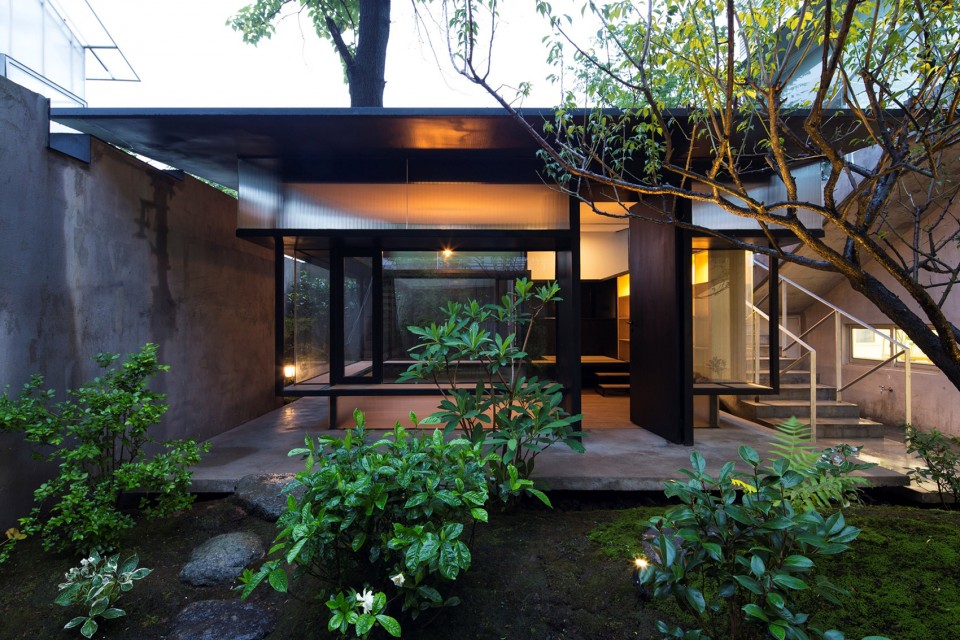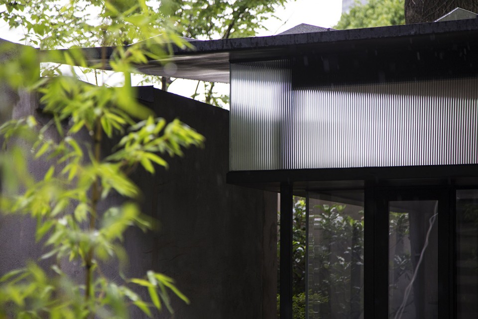 設(shè)計(jì)說(shuō)明:一棵高高的泡桐樹(shù),樹(shù)下院內(nèi)擬修茶室一座。不大的院子里還有兩個(gè)和旁邊辦公樓相連的樓梯,如何讓茶室最小限度地侵占院子的空間,是設(shè)計(jì)的一個(gè)重點(diǎn)。
