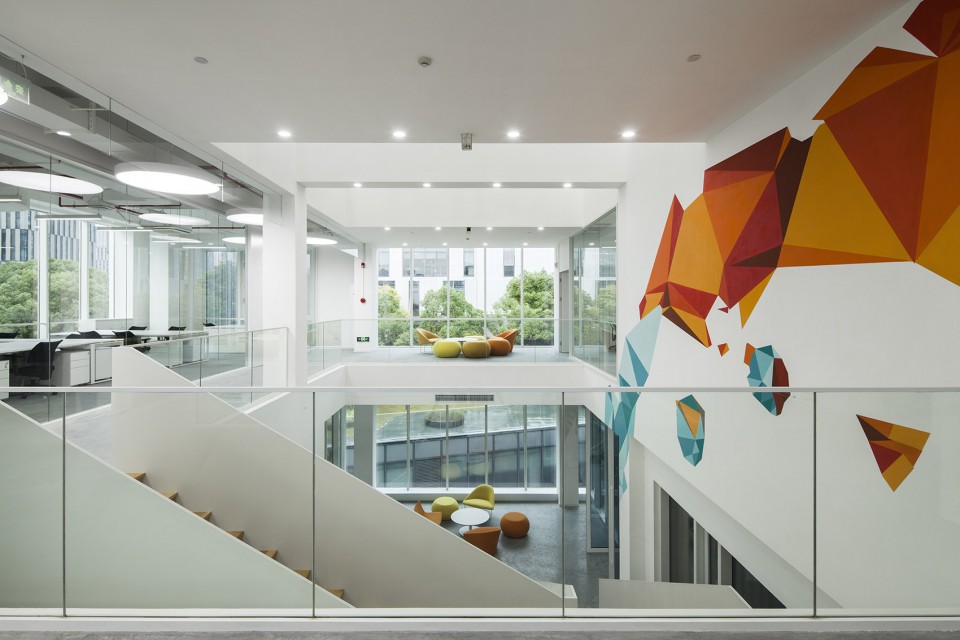 設(shè)計說明:辦公室裝修設(shè)計作品需要確保有豐富的功能性,在構(gòu)思設(shè)計理念的時候,南京漢拓設(shè)計師充分考慮了該辦公室需要提供舒適工作和交流處所的作用,將空間進(jìn)行拉伸,打破了原有的大進(jìn)深平面,不僅使得室內(nèi)空間有了很好的貫穿,還順帶優(yōu)化了室內(nèi)日光。公共流通空間中包括了會議室、洽談區(qū)、咖啡廳等區(qū)域,劃分井然有序。
