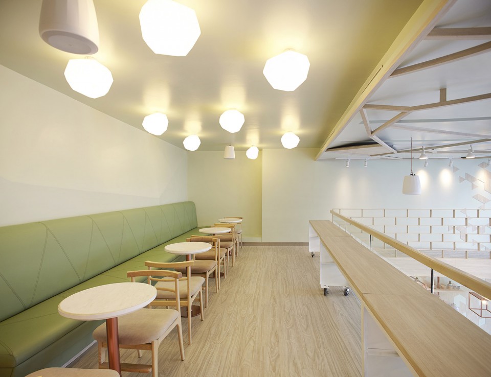 裝修理念:該店是由南京漢拓裝飾裝修設(shè)計的。室內(nèi)設(shè)計的概念是從糖的基本構(gòu)成即其糖分子和晶體的形式而來。從室外透過玻璃外墻向內(nèi)看,懸掛在眼前的是晶體一樣的多邊形構(gòu)架。此外,在設(shè)計中使用木質(zhì)材料融合薄荷綠的顏色,打造出溫暖樸實的氛圍。設(shè)計師團隊還通過使用玫瑰金顏色和大理石吧臺增加了幾許現(xiàn)代和奢華。