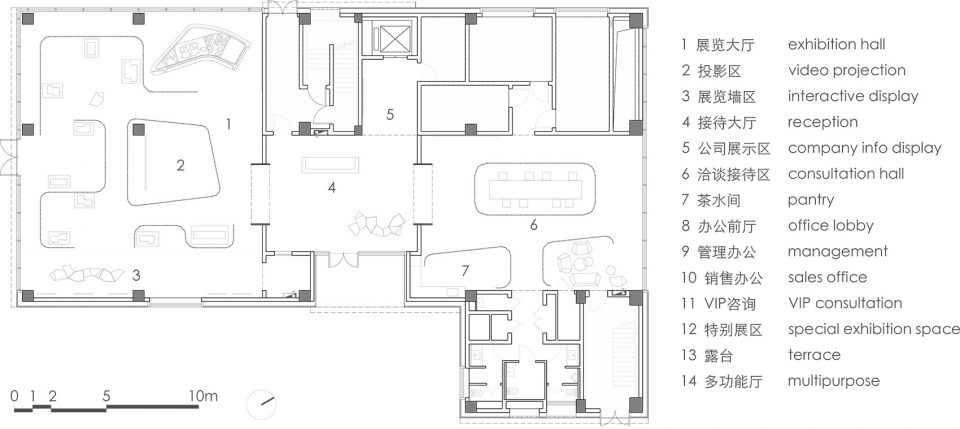裝修理念:該展廳是由南京漢拓裝飾工程有限公司裝修的。該行業(yè)為聯(lián)合辦公房屋租賃一站式服務行業(yè),主要從事聯(lián)合辦公室的一系列商務服務,因此,對于商業(yè)元素的裝修要求較高,該項目為展廳體驗中心,主要展示相關產品,設計師首先充分和業(yè)主溝通了解了對方的商業(yè)需求,有針對性的對室內空間進行了布局和劃分,將其打造成了一個既有展示功能,又有線下體驗功能的實用場景。設計師考慮到了該展廳的展示作用,燈光、裝飾、走廊、色調、距離等都有很充分的把握,還將員工辦公室打造成了具有一定觀賞性質的小體驗中心,十分用心。