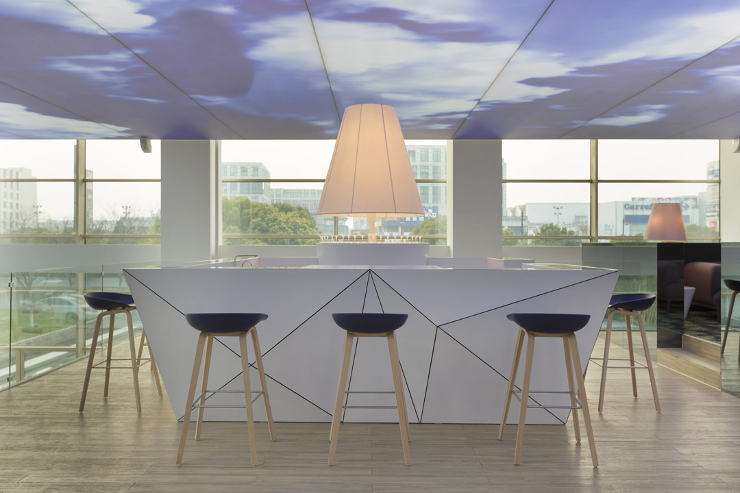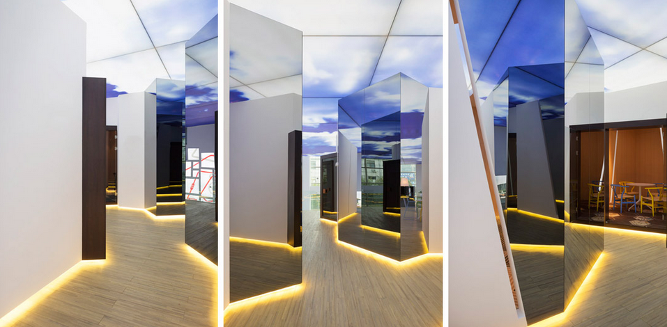 設(shè)計(jì)說(shuō)明:該展廳是由南京漢拓裝飾工程有限公司裝修的。該項(xiàng)目為南京售樓處的一個(gè)展廳兼線下體驗(yàn)中心,設(shè)計(jì)師理解了場(chǎng)景營(yíng)銷對(duì)于業(yè)主的重要性,用設(shè)計(jì)的語(yǔ)言對(duì)展廳進(jìn)行了塑造和解讀,天花做了藍(lán)天白云的裝飾,讓展廳的展示效果更加直觀;整個(gè)展廳室內(nèi)用大面積大量的玻璃材質(zhì)進(jìn)行裝配,一個(gè)是顯得通透、明亮,另一個(gè)就是表達(dá)產(chǎn)品的直觀性;對(duì)于小體驗(yàn)中心進(jìn)行了造型設(shè)計(jì),立柱的支撐既有裝飾作用,又使得樓房高層的體驗(yàn)感更真實(shí)。