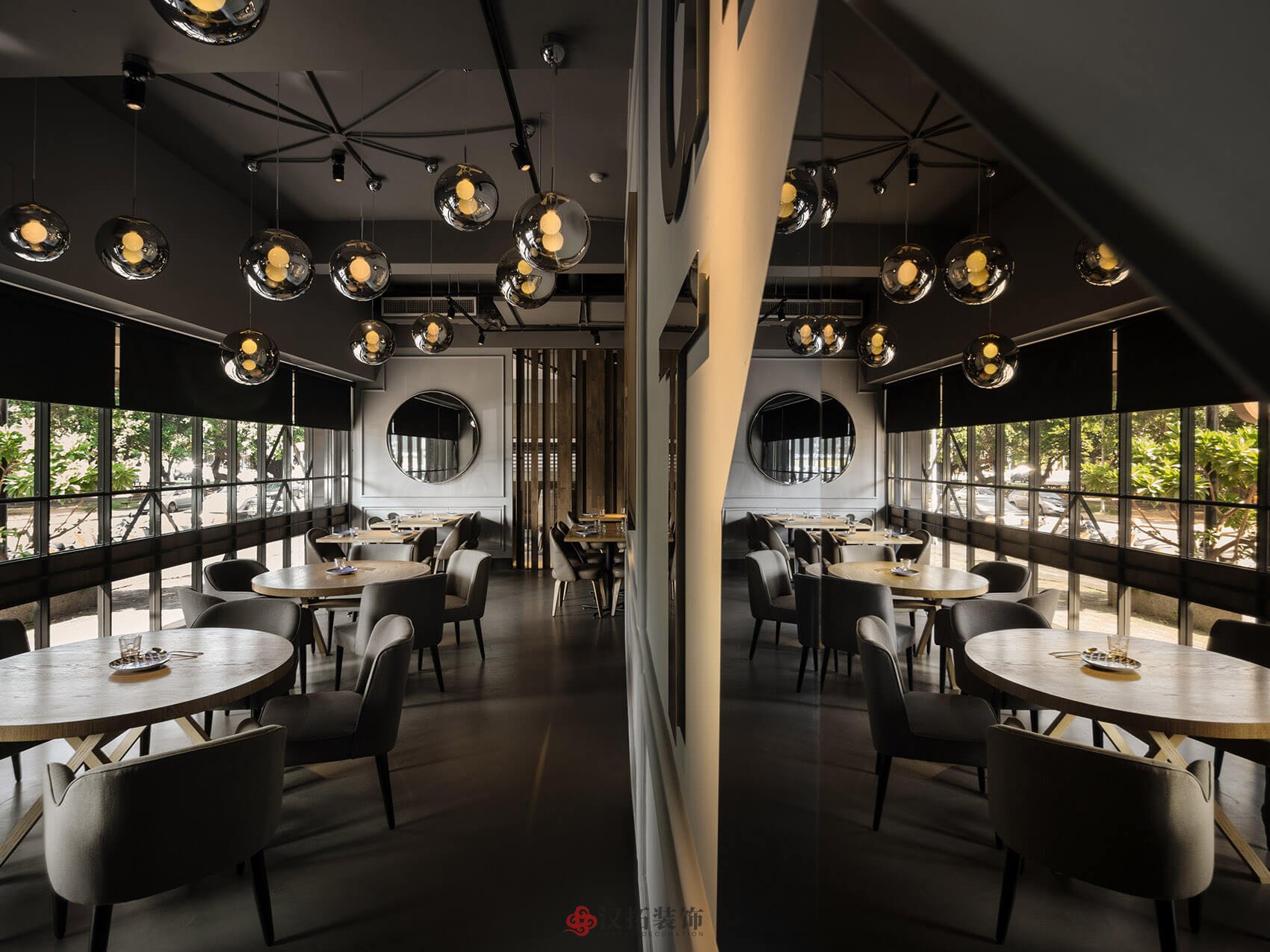 設(shè)計說明:餐飲空間的主題設(shè)計是整個設(shè)計的靈魂,主題式設(shè)計定位和設(shè)計內(nèi)容表現(xiàn)的第一要素,是一個文化的訴求,空間藝術(shù)的主體性不僅創(chuàng)造了精神財富,還能引導(dǎo)和轉(zhuǎn)變?nèi)藗兊膶徝烙^念,提升設(shè)計文化品位。