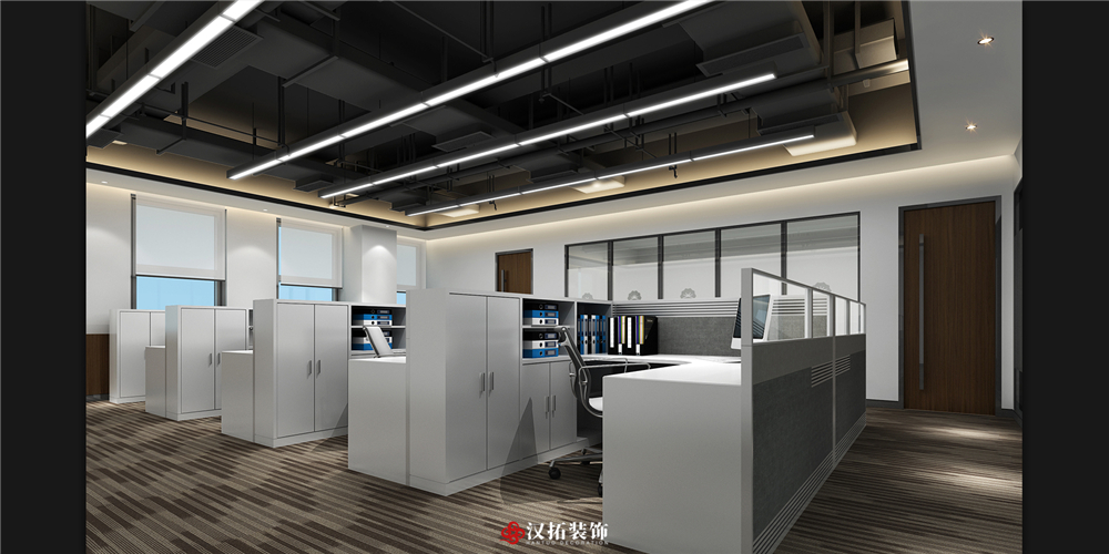 設計說明:預算:128萬 設計說明:辦公室整體色調采用藍灰調,使員工辦公的心情能夠沉靜下來,工作效率自然可以得到提高